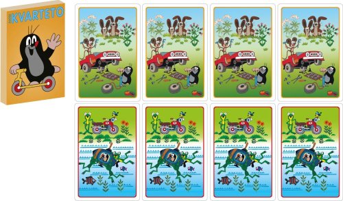 32 kariet + karta s návodom k hre, materiál krabičky aj kariet pevný kartón s lesklou povrchovou úpravou-vodoodpudivá, krabička papierová z dôvodu tradície i bezpečnosti detí, na výrobok boli udelené ocenenia "česká kvalita" a "bezpečná a kvalitná hračka"