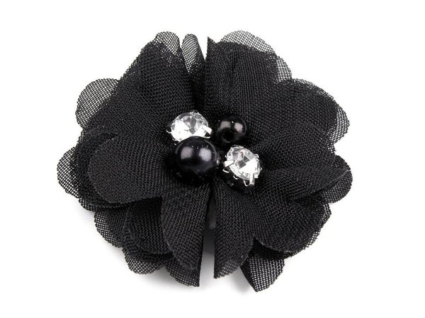 Textilný kvet pôsobí jemne a romanticky. V jeho strede sú našité plastové korálky a brúsené kamienky, ktoré sa efektne trblietajú. Neodporúčame prať, aby zostala zachovaná pôvodná kvalita výrobku. Použitie: Kvet môžete našiť ako ozdobu na spoločenské šaty, blúzky, tričká alebo svetre. Je vhodný aj na zdobenie klobúkov, čiapok a čeleniek do vlasov. Môžete ho tiež pomocou lepidla prilepiť na brošňový mostík a vytvoriť zaujímavý šperk. [U bielej farby sa môže líšiť farba kovu (platina, strieborná).]