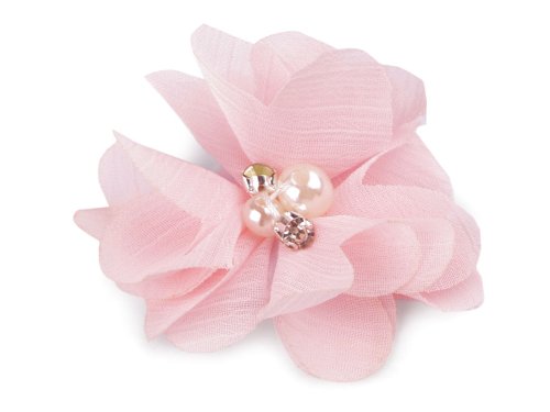 Textilný kvet pôsobí jemne a romanticky. V jeho strede sú našité plastové korálky a brúsené kamienky, ktoré sa efektne trblietajú. Neodporúčame prať, aby zostala zachovaná pôvodná kvalita výrobku. Použitie: Kvet môžete našiť ako ozdobu na spoločenské šaty, blúzky, tričká alebo svetre. Je vhodný aj na zdobenie klobúkov, čiapok a čeleniek do vlasov. Môžete ho tiež pomocou lepidla prilepiť na brošňový mostík a vytvoriť zaujímavý šperk. [U bielej farby sa môže líšiť farba kovu (platina, strieborná).]