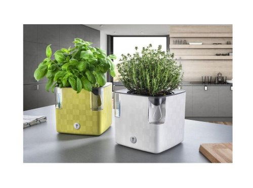 Plastový obal na črepník v modernom dizajne so špeciálnym Aqua systémom. Je vhodný pre črepník s priemerom 10 - 12 cm. Nie je potrebná žiadna montáž, kvetináč je pripravený na používanie. Šírka: 14 cm, výška: 14 cm, hĺbka: 14 cm.