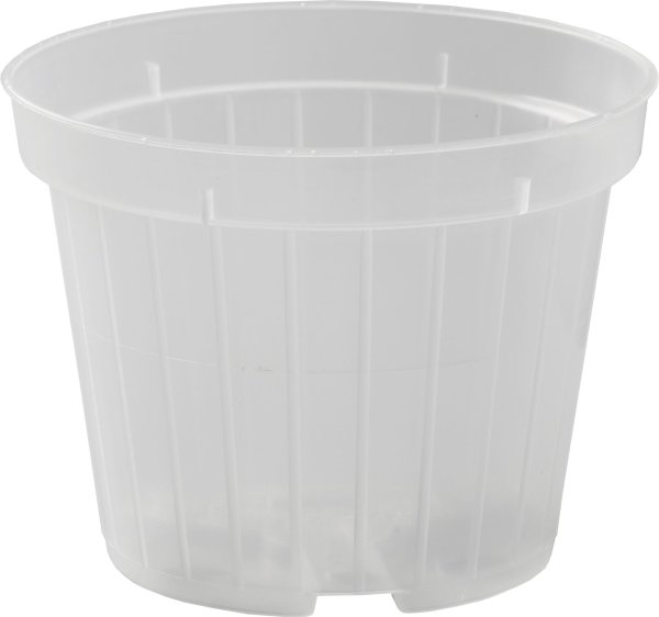 Priehľadný tenkostenný kontajner vhodný predovšetkým pre pestovanie orchideí. Vďaka mliečnej priehľadnej farbe sa ku koreňom rastliny dostáva dostatok slnečného svetla, čo jej pestovanie prospieva.