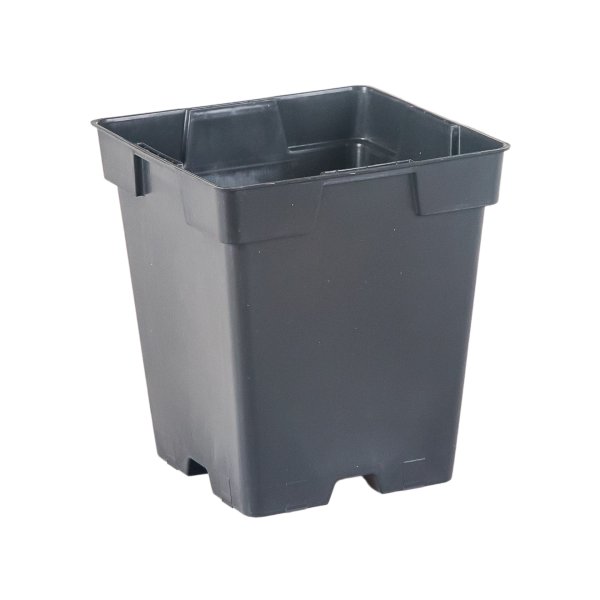 Hranatý plastový čierny kontajner pevnej kvality je určený pre pestovanie rastlín. Pevná kvalita znamená, že drží tvar a je nepromáčknutelný. Používa sa na výsadby. Svojou cenou, mnohými veľkosťami a pevnú kvalitou sa radí medzi bežne dostupné plasty.