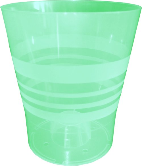 Plastový kvetináč pre orchidey. Zvýšené dno zabezpečuje, aby rastlina netrpela preliatím a prebytkom vody, čo je najčastejšou príčinou ich zvädnutí. Možno použiť aj ako obal, odtokové otvory sú len naznačené.