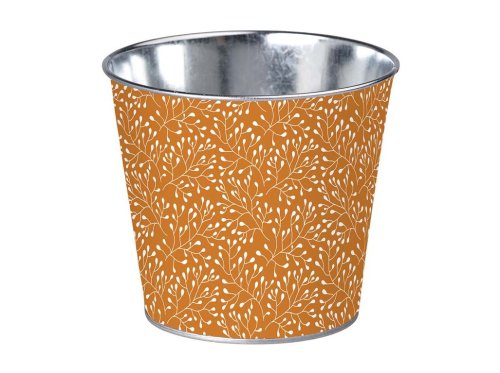Kvetináč plechový 133x115mm klasik Autumn Herbarium, oranžová, biela,