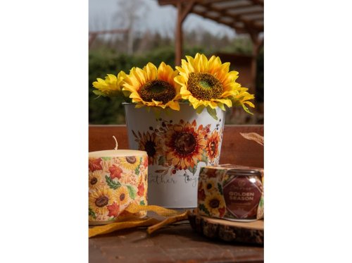 Kvetináč plechový 185x175mm klasik slnečnice, žltá, biela, hnedá