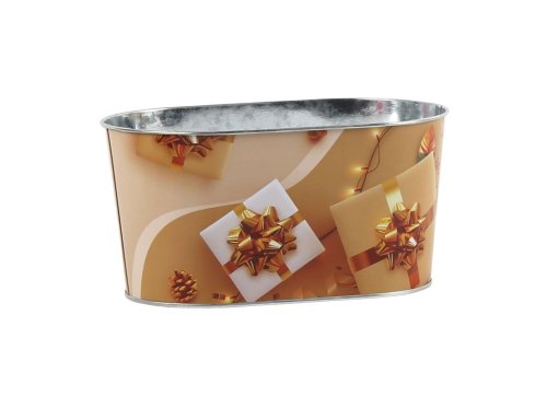 Kvetináč plechový 225x110mm oválny darčeky, biela, zlatá