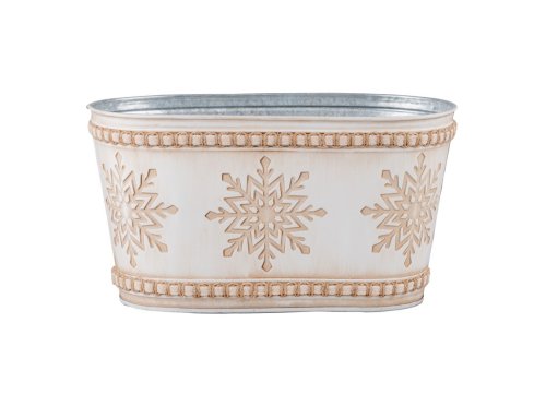 Kvetináč Vločka je oválny plechový kvetináč v elegantnom bielom a krémovom prevedení, vhodný pre kvety, bylinky alebo zimné dekorácie. Štýlový dizajn dodáva priestoru sviatočnú atmosféru a zároveň je praktický na každodenné použitie.