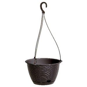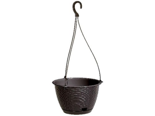 Plastový závesný črepník s pripevnenou podmiskou a plastovým hákom na zavesenie. Farba: antracitová. Priemer: 22 cm, výška: 14 cm.