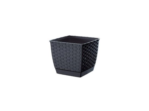 Hranatý plastový obal na črepník verne imituje ratanový výplet. Elegantný motív je vhodný do interiéru, na terasy aj balkóny. Farba: antracitová. Šírka: 19 cm, výška: 16 cm, hĺbka: 19 cm.