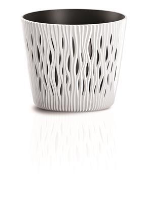 Plastový matný obal na črepník so zvlnenými vertikálnymi drážkami so vzhľadom púštneho piesku. Je vhodný do interiéru aj vonkajších priestorov - je odolný voči UV žiareniu. Šírka: 19 cm, výška: 17 cm.