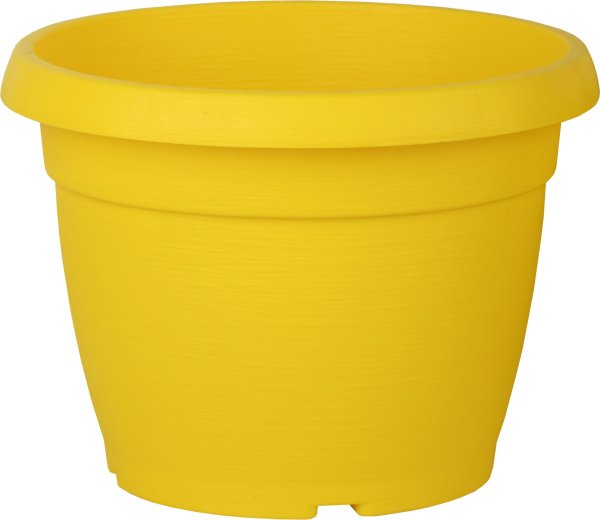 Kvetináč s dezénom a odtokovými otvormi vo farbe žltej.
