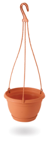 Plastový v pôdoryse okrúhly závesný kónický črepník s podmiskou. Používa sa na zavesenie s vysadenými previsnutými rastlinami v interiéri aj v exteriéri. Rozmery: d. 24 x v. 15cm.