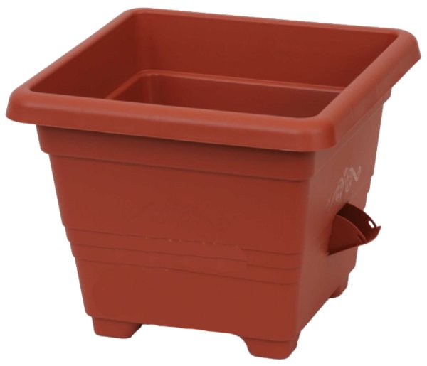 Plastový, samozavlažovací kvetináč štvorcového pôdorysu s hladkým povrchom je zaistený výklopným otvorom, ktorý zároveň slúži na zalievanie kvetov a ako prepadový otvor. 50 cm x 50 cm.