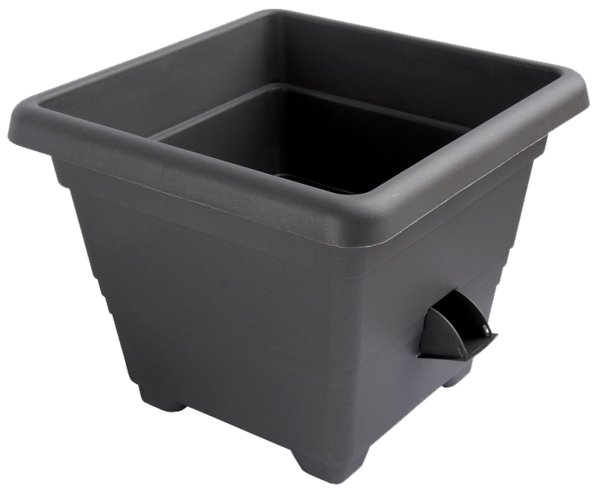 Kvetník štvorcového pôdorysu s hladkým povrchom a nožičkami umožňujúcimi odtok vody. Okrem knôtu obsahuje okienko na zalievanie, na odtok prebytočnej vody pri daždi a prístupe vzduchu ku koreňom. Rozmery: 40 x 40 cm, výška: 32 cm.