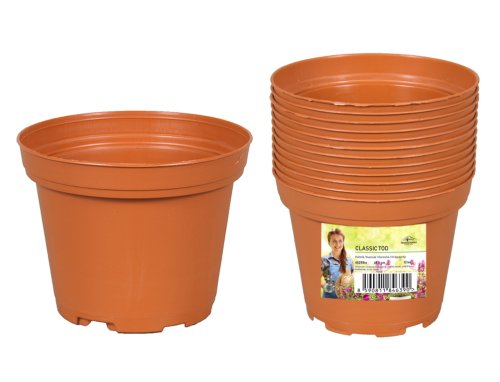 Ľahčený plastový črepník pre zdravé rastliny a ich rýchly rast. Farba: terakota. Priemer: 9,5 cm. V balení je 12 kusov.