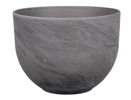 Keramický črepník veľmi elegantného, zaobleného tvaru, kruhového pôdorysu, s jedinečným zemito šedým sfarbením, s antracitovým mramorovaním. Každý kus je originálne zafarbený v závislosti od zloženia ílu. Vhodný na umiestnenie do interiéru aj exteriéru, neošetrený, s otvorom. Mrazuvzdorný. Priemer: 33 cm, výška: 24 cm. Farba: šedá s tmavo šedým melírom. Vhodnou podmiskou je CASINO d28cm - 002128čm.
