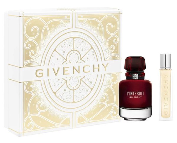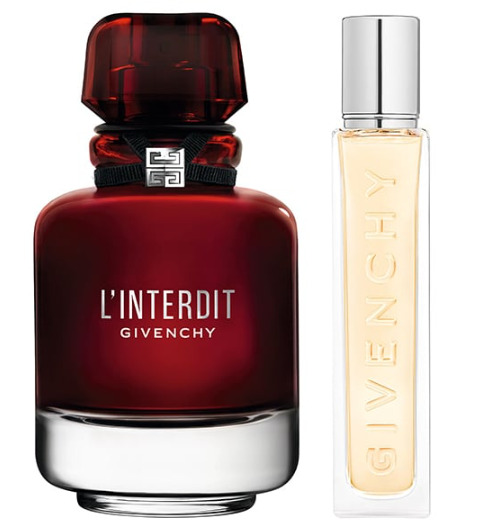 Givenchy L'Interdit Rouge predstavuje zmyselné pokušenie, ktorému nemožno odolať. Táto kvetinovo-drevitá parfumovaná voda rozdúchava vášeň a odhaľuje telesný impulz, ktorý prekračuje hranice bežného. Otvára sa žiarivým akordom sicílskeho krvavého pomaranča a pikantnými tónmi korenia. V srdci rozkvitajú zvodné pomarančové kvety z Tuniska v sprievode vzácneho jazmínu Sambac z Indie, ktorý dodáva vôni zmyselnú ženskosť. Kompozíciu uzatvára hrejivý základ s intenzívnou esenciou indonézskeho pačuli a krémovým santalovým drevom z Novej Kaledónie. Uvedená na trh v roku 2021, L'Interdit Rouge je vôňa pre modernú ženu, ktorá sa nebojí žiť naplno a podľa vlastných pravidiel. Súčasťou sady je: