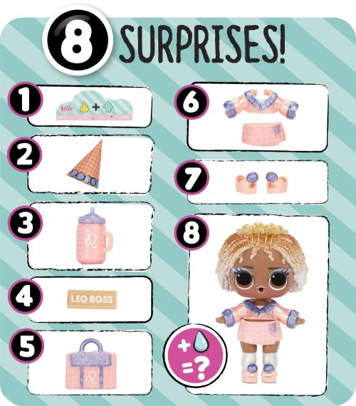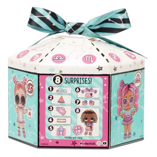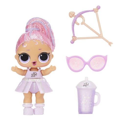 Každá bábika má vlastný astrologické znamenie. Nájdeš tu, ktorá má rovnaké znamenie ako ty? Spoločne s bábikou v darčekovom balení so stuhou a darčekovú kartičkou objavíš doplnky a trblietavý outfit.