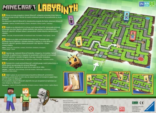 Vydajte sa na jedinečné dobrodružstvo do bláznivého Minecraftového bludiska! S krompáčom v ruke vstúpte do spletitých chodieb, kde na vás čakajú vzácne predmety aj tajomné stvorenia. Táto hra vás prevedie dômyselným labyrintom, ktorý sa neustále mení - každý posun odhaľuje nové cesty, ale tiež skryje tie, čo už poznáte. Premýšľajte strategicky, meňte podobu bludiska vo svoj prospech a objavte zákerné trasy k víťazstvu. Triumf získa ten, kto dokáže najlepšie prekabátiť bludisko a vrátiť sa s cennými objavmi na svoje štartové políčko. Obsahuje: 1 hrací plán, 34 kartičiek bludiska, 24 obrázkových kariet, 4 hracie figúrky, 4 krompáča