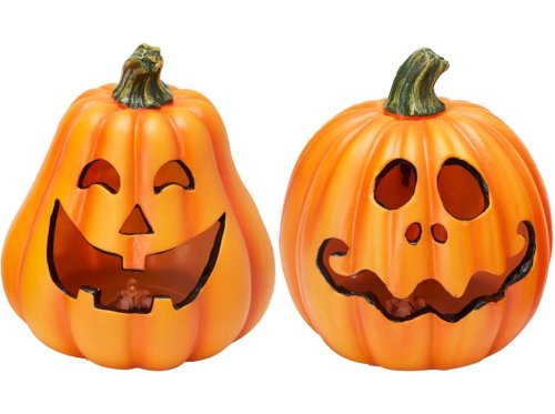 Detailne spracovaná tekvica z pevného polyresinu so zabudovaným LED svetlom. Príjemne žiari teplým svetlom a dodá každému večeru kúzelnú atmosféru. Funguje na batérie (nie sú súčasťou), vhodná na vnútorné použitie. Tovar je dodávaný v mixe. Doručovaný tovar je vyberaný náhodne a nie je možné vybrať konkrétne prevedenie. Produkt na svoje fungovanie potrebuje batérie, batérie nie sú súčasťou balenia.