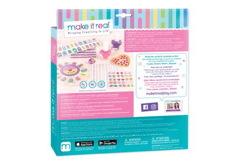 Laky na nechty so zdobením. Obsahuje: 2 farby laku na nechty, množstvo nálepiek a ozdôb na nechty, inštrukcie. Laky na nechty sú na vodnej báze a dajú sa odstrániť jemným trením teplou vodou a mydlom.