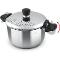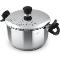 Hrniec vyrobený z prvotriednej nehrdzavejúcej ocele vrátane pokrievky, opatrený silným sendvičovým dnom.