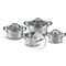 8 ks Vyrobený z prvotriednej nehrdzavejúcej ocele Dizajnový nerezový riad vyrobený z prvotriednej nehrdzavejúcej ocele, opatrený silným sendvičovým dnom a veľmi elegantnými nerezovými úchytmi pre väčšiu bezpečnosť, funkčnosť a pohodlie Pokrievky z odolného skla a otvorom pre paru pre dokonalú kontrolu varenia plynové, elektrické, sklokeramické a indukčné Vhodné do umývačky riadu Jednoduchá údržba a čistenie 3 roky záruka