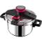 Tlakový hrniec 5l .Tlakový hrniec je vyrobený z prvotriednej nehrdzavejúcej ocele 18/10 a veľmi odolného plastu. Jednoduchá manipulácia otvorenia veka jednou rukou. Využitím regulácie tlaku je možné pripraviť veľmi šetrne, rýchlo a chutne akýkoľvek pokrm. Tlakový hrniec je vybavený indikátorom tlaku, dvojitým bezpečnostným ventilom a bezpečnostným okienkom, poistkou proti pretlaku a masívnymi držadlami pre ľahkú manipuláciu, ktorá nepáli. Dizajnový tlakový hrniec so sendvičovým dnom je určený pre všetky typy sporákov vrátane indukčného.