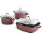 Rozmery: Kastról s pokrievkou Ø 20cm x 9 cm, objem 2,2 l Kastról s pokrievkou Ø 24cm x 11 cm, objem 4,2 l Pekáč s pokrievkou 28 x 28 x 7,5 cm, objem 4,8 l
