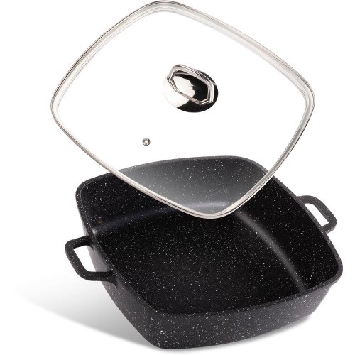 Vyrobené z vysoko odolného hliníka Riad vybavený vnútorným nepriľnavým povrchom odolným proti oderu a pripaľovaniu, silným dnom a veľmi elegantnými úchytmi pre väčšiu bezpečnosť, funkčnosť a pohodlie Pokrievky z odolného skla a otvorom pre paru pre dokonalú kontrolu varenia Nepriľnavý materiál bez použitia PFOA (nevyparuje sa toxické látky pri prehriatí) teplotne vysoko odolný, zabraňuje pripaľovaniu, zdravé varenie Jednoduchá údržba a čistenie