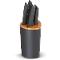 Set 5 nožov v bloku Veľmi ostrá čepeľ a ergonomická rukoväť pre maximálny účinok a bezpečné použitie Neovplyvňuje vôňu a chuť krájaných potravín Po použití umyte a osušte, ukladajte mimo dosahu detí UPOZORNENIE: Pri nesprávnej manipulácii je každý nôž nebezpečný