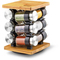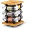 Súprava koreničiek na otočnom bambusovom stojane v modernom dizajne Koreničky vyrobené z odolného skla Vhodné aj do umývačky riadu bez viečka Objem koreničky 85 ml Rozmery: 15,7 x 15,7 x 22,2 cm Korenka priemer: 4 cm, výška 9,3 cm Materiál: drevo / nerez / sklo Farba: číra