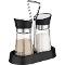 Praktická stolná súprava soľničky a koreničky určená pre domácnosť i gastronomické zariadenia Koreničky vyrobené z nehrdzavejúcej ocele a skla Stojanček vyrobený z plastu a nehrdzavejúcej ocele Plastové časti umývajte vždy ručne Pre plnenie alebo používanie otvorte alebo uzavrite pootočením nerezového viečka alebo silikónového prstenca Upozornenie: s