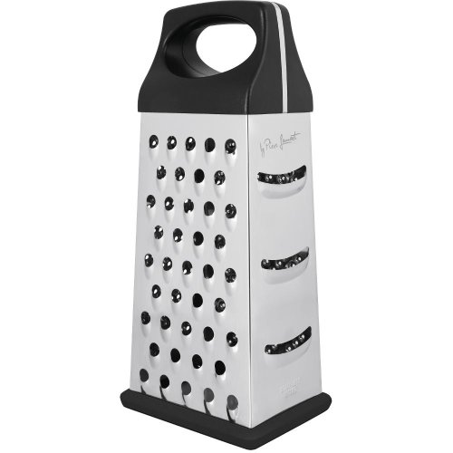 Strúhadlo štvorstranné nerezové pre ručné strúhanie syrov, zeleniny, ovocia atď Štyri typy strúhacích plôch zaisťujú dostatočný výber sily potravín Plastová pevná rukoväť Protišmyková silikónová guma Pred prvým a po každom použití umyte teplou vodou so saponátom, opláchnite