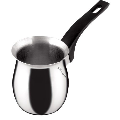 Džezva pre tradičnú prípravu tureckej alebo gréckej kávy vyrobená z vysoko kvalitnej nerez ocele Štýlový dizajn, ergonomická bakelitová rukoväť Lievik