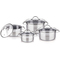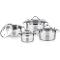 Sada riadu 8 dielov ELEGANT. Vyrobené z prvotriednej nehrdzavejúcej ocele. Dizajnový nerezový riad vyrobený z prvotriednej nehrdzavejúcej ocele, opatrený silným sendvičovým dnom a veľmi elegantnými úchytmi pre väčšiu bezpečnosť, funkčnosť a pohodlie. Pokrievka z odolného skla a otvorom pre paru pre dokonalú kontrolu varenia. Vhodné pre všetky typy sporákov - plynové, elektrické, sklokeramické, halogénové a indukčné. Vhodné do umývačky riadu. Jednoduchá údržba a čistenie. 3 roky záruka. Rozmer melého hrnca: Ø16cm;7,7cm Rozmer stredného hrnca: Ø18cm;8,8 cm Rozmer väčšieho hrnca: Ø20cm; 10 cm Rozmer najväčšieho hrnca: Ø22cm; 11 cm