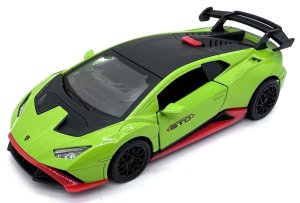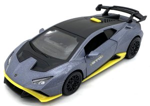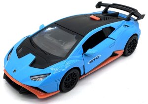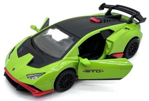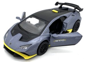 Model Lamborghini Huracan STO predstavuje precízne spracovanú kovovú repliku športového vozidla, ktorá je dostupná v troch variantoch farebného vyhotovenia. Každý model kombinuje pevný kovový základ s plastovými detailmi, čo zaisťuje realistický vzhľad a zároveň odolnosť produktu. Vozidlo verne kopíruje charakteristický dizajn skutočného vozidla Lamborghini Huracan, vrátane aerodynamických tvarov a detailného spracovania karosérie.