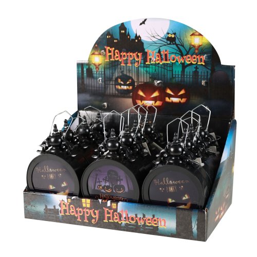 Halloweenské svietidlo na tú pravú Halloween párty! Plastová lampička je funkčná na 3 batérie typu LR1130 (batérie sú súčasťou balenia). Stačí len prepnúť prepínač v spodnej časti. Lampička po zapnutí bliká rôznymi farbami, ktoré sa samy prepínajú. Veľkosť lampičky je cca 13 cm.