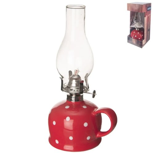 Petrolejová lampa poslúži ako romantické svietidlo. Skvelý doplnok interiéru, ale aj vás môže zachrániť pri výpadku elektrického prúdu. Plní sa buď petrolejom alebo lampovým olejom. Návod na obsluhu je na obale. Materiál sklo, keramika, kov, bavlna. Priemer 11 cm, výška 28 cm. EAN 8596265126057
