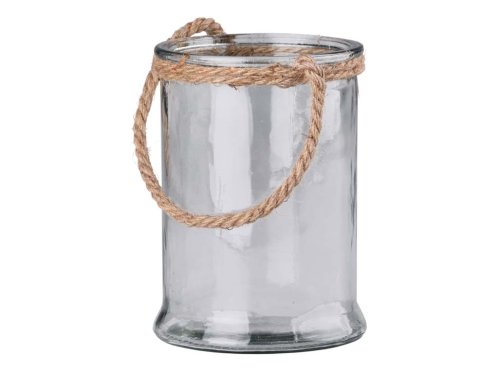 Lampa o veľkosti 12,5 × 16,5 cm je krásnou ukážkou prepojenia prírodných prvkov a jednoduchého dizajnu. Číre sklo nechá vyniknúť plameňu sviečky alebo drobnému svetielku, zatiaľ čo záves z lana ponúka ľahké zavesenie. Ideálna do moderného aj vidieckeho interiéru, skvelá aj ako darček.