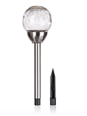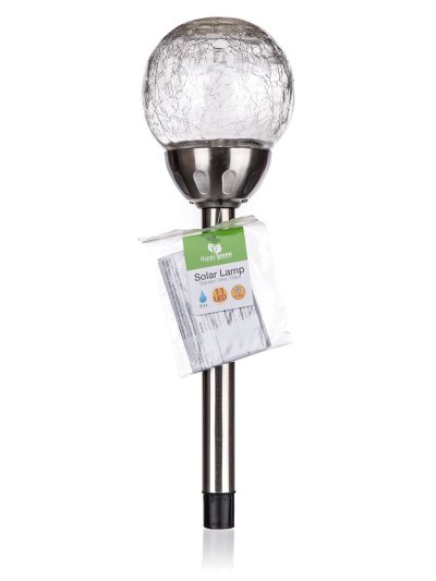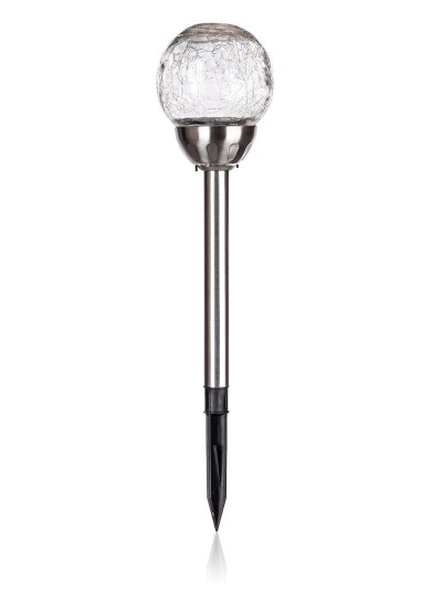 Solárna nerezová lampa o výške 38,5 cm, so skleneným dekoračným tienidlom v tvare gule s pavučinovým dekorom s priemerom 10 cm, je funkčná a zároveň ozdobná súčasť do každej záhradky. Svetelný zdroj - 1 x biela LED a 1 x farebná LED. Pri prevádzke je možné prepínačom zvoliť režim svietenia buď stabilnej bielej farby, alebo meniace sa farebné spektrum. IP 44.