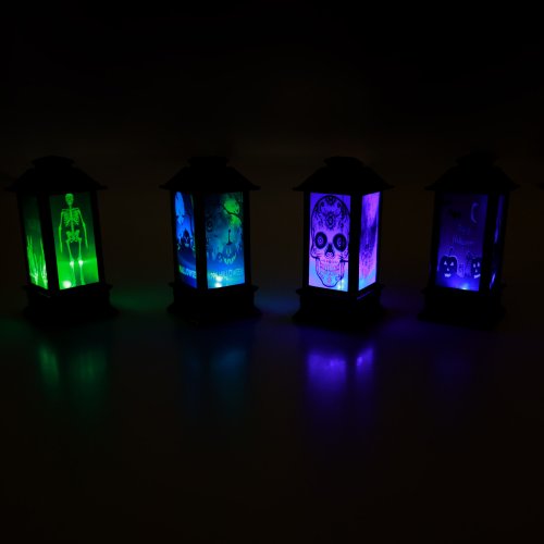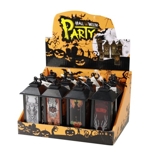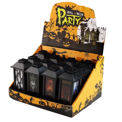 Halloweenské svietidlo na tú pravú Halloween párty! Plastová lampička je funkčná na 3 batérie typu LR1130 (batérie sú súčasťou balenia). Stačí len prepnúť prepínač v spodnej časti. Veľkosť lucerničky je cca 13 cm.
