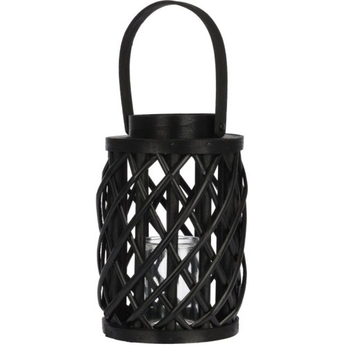 lampáš, vŕba, veľkosť: 15x15x25cm, s držadlom a skleneným valcom 10x8cm, čierna farba