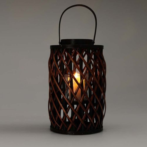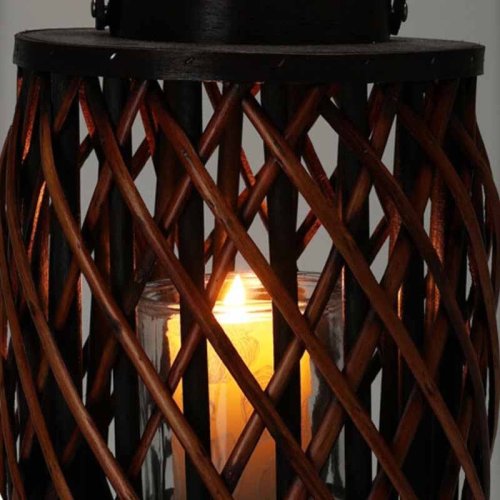 lampáš, vŕba, rozmer: 15x15x25cm, s držadlom a skleneným valcom 10x8cm, hnedá farba