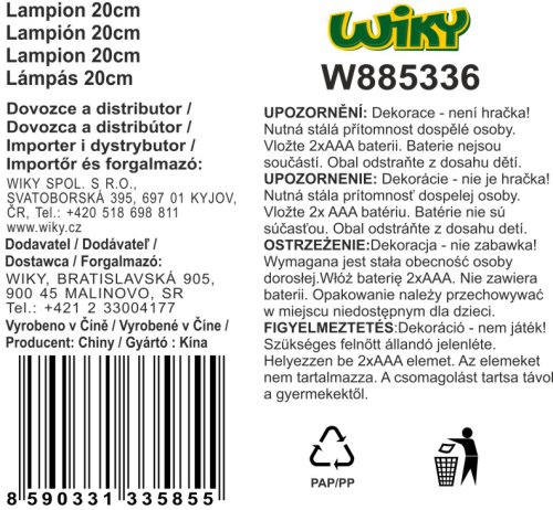 Lampión svieti po vložení 2x AAA batérií, ktoré nie sú súčasťou balenia. Lampión má tvar gule a je vyrobený z papiera. Lampión je bez prútika.
