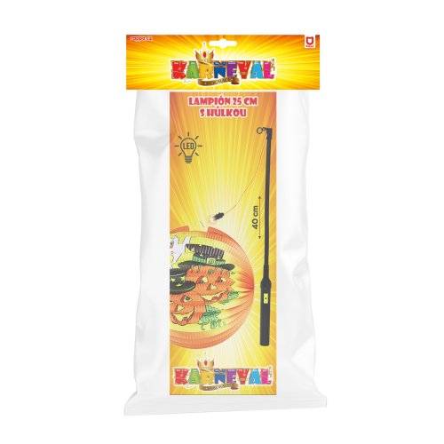 Papierový lampión s motívom tekvice ak nemu svietiaca palička. Ideálna sada na Halloween párty alebo lampiónový sprievod! Prútik vyžaduje 2 ceruzkové batérie typu AA, ktoré nie sú súčasťou balenia. Prepnutím spínača na rukoväti prútik svieti.