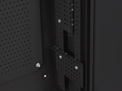 Vnútorný priestor skríň radu WAF1 je okrem iného vybavený sieťovým panelom na zadnej stene. Vďaka tomuto riešeniu naň môžete ľahko pripevniť rôzne komponenty pomocou skrutiek M4, čo zaistí spoľahlivé upevnenie a organizáciu vášho vybavenia.