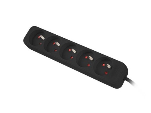 LANBERG Predlžovací prívod pre UPS zariadenie, dĺžka 1m, 5x výstupy, čierna