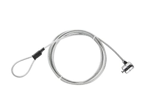 Typ zámku: Na kľúč Farba: Strieborná Dĺžka kábla: 1,8m Materiál: oceľ, PVC Standard: Kensington lock 3x7mm