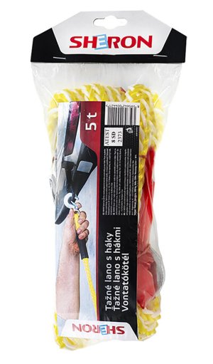 SHERON Ťažné lano s hákmi pre ľahkú manipuláciu a pripevnenie medzi dva automobily pomocou nerezových hákov. Súčasťou balenia je červená zástavka.